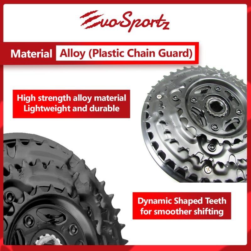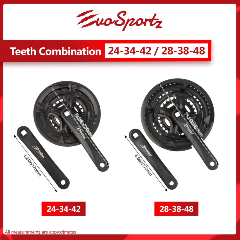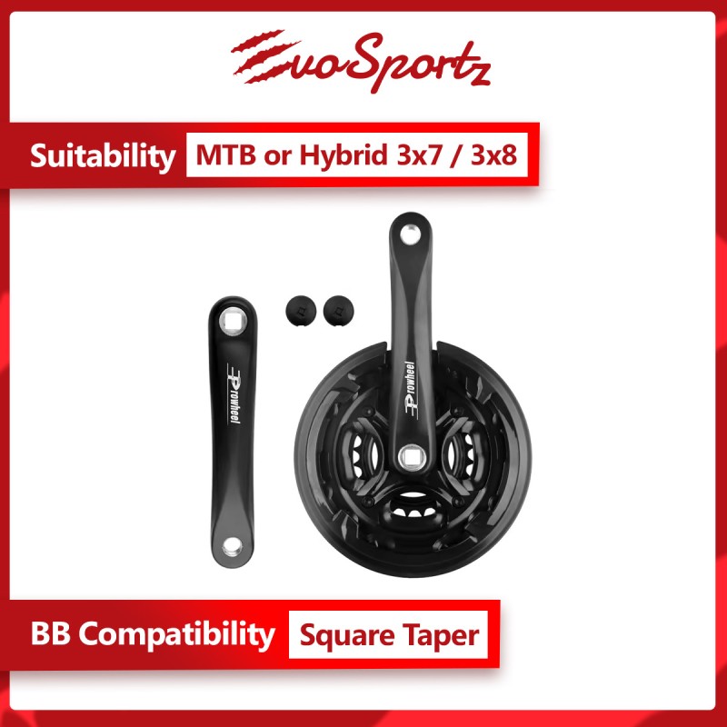 Enjoy an additional 5% off retail price when you walk-in to our store to purchase as a member.The Prowheel 3 Speed Crankset is compatible with 3x7 / 3x8 Speed. It provides stable and smooth rotation and comes with a plastic guard to ensure chain retention.