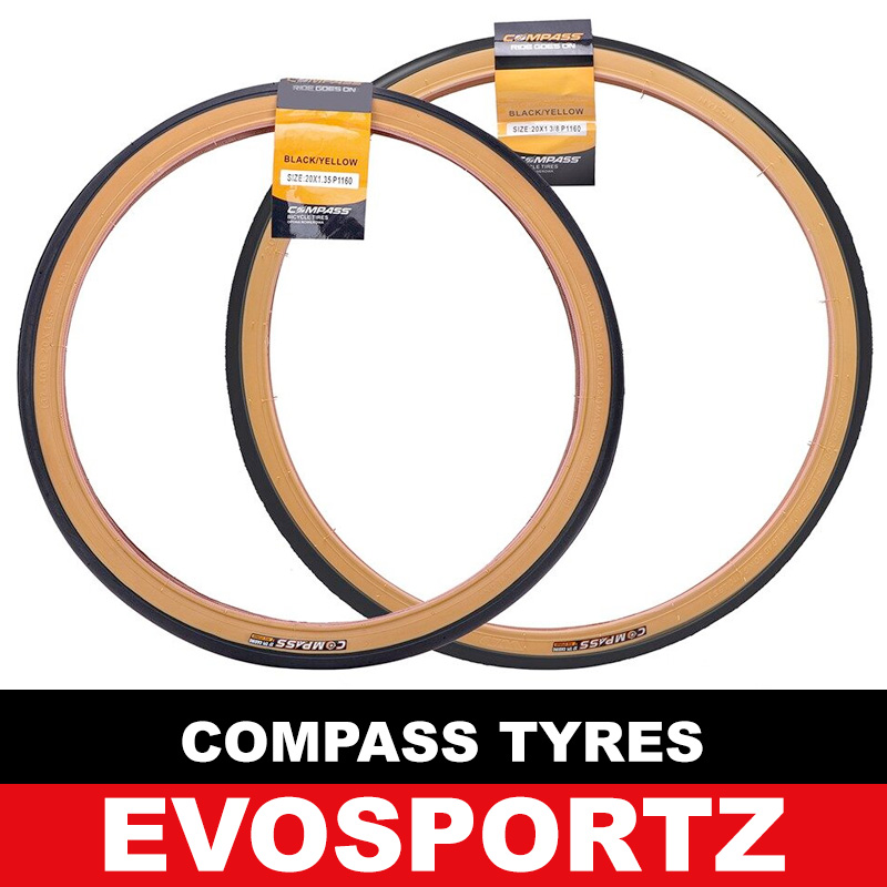 Compass P1160 Tyre for your foldie. 406 and 451 sizes both available according to your needs. Slick and fast rolling for an energy efficient ride.