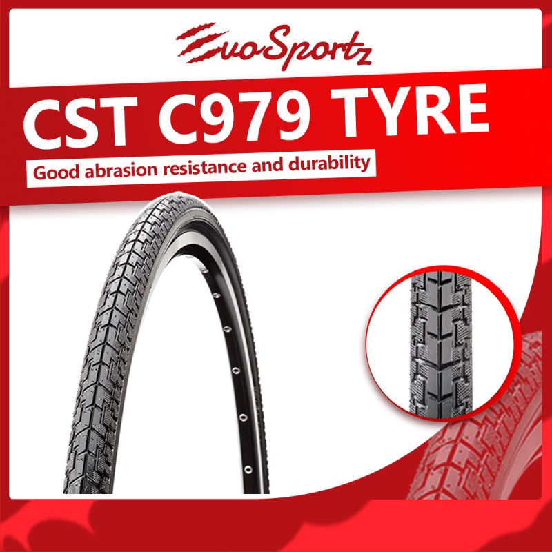 Enjoy an additional 5% off retail price when you walk-in to our store to purchase as a member.The CST C979 Tyre features a directional grooved semi-slick tread pattern for low rolling resistance with textured shoulders for improved cornering grip.