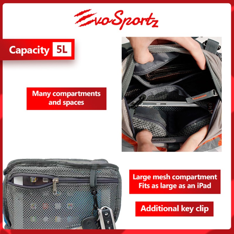 Hiking or a long outdoor trip? This waist pack is the perfect companion for you. Extremely large, it can even fit an iPad or a camera. Compartmented, it allows you to organise your items, and easily find what you need in the bag. In addition, it is water resistant coated, so you can safely use it even when it rains!