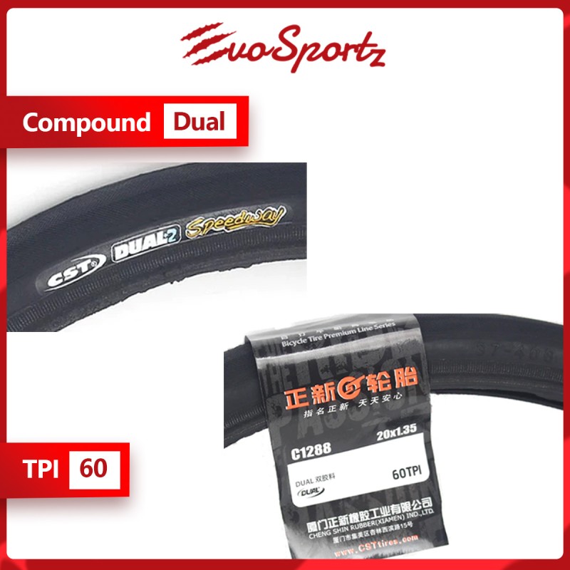 Enjoy an additional 5% off retail price when you walk-in to our store to purchase as a member.CST Speedway Tyre is built for folding bicycles that wants to go fast and light. The smooth tyre tread is amazingly fast yet durable. 60 TPI and in both 406 and 461 size.
