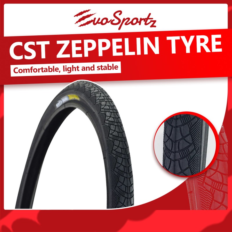 Enjoy an additional 5% off retail price when you walk-in to our store to purchase as a member.CST Zeppelin Tyre is for the laid back cyclists that wants stability over speed. With a wider width and more air, this tyre is a good choice for all leisure cyclists.