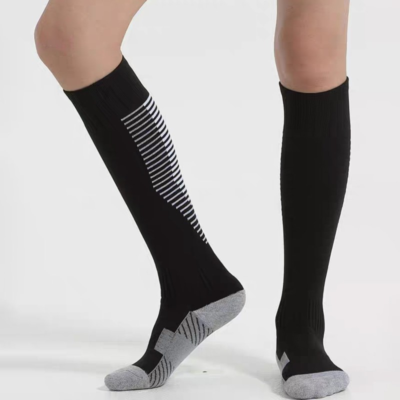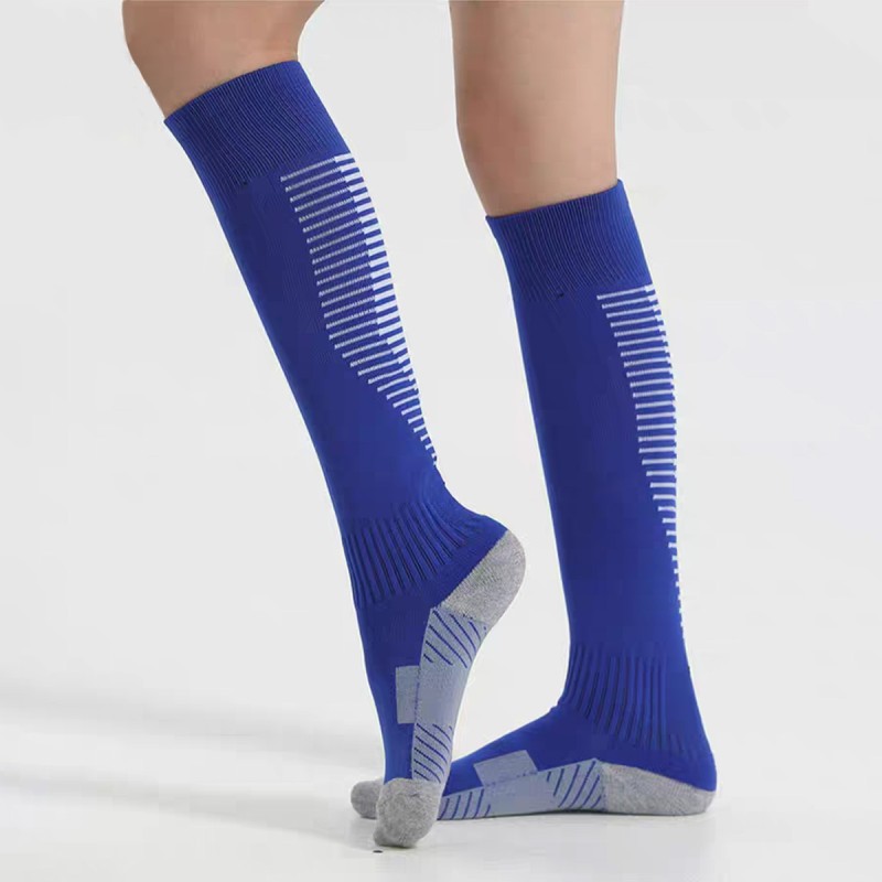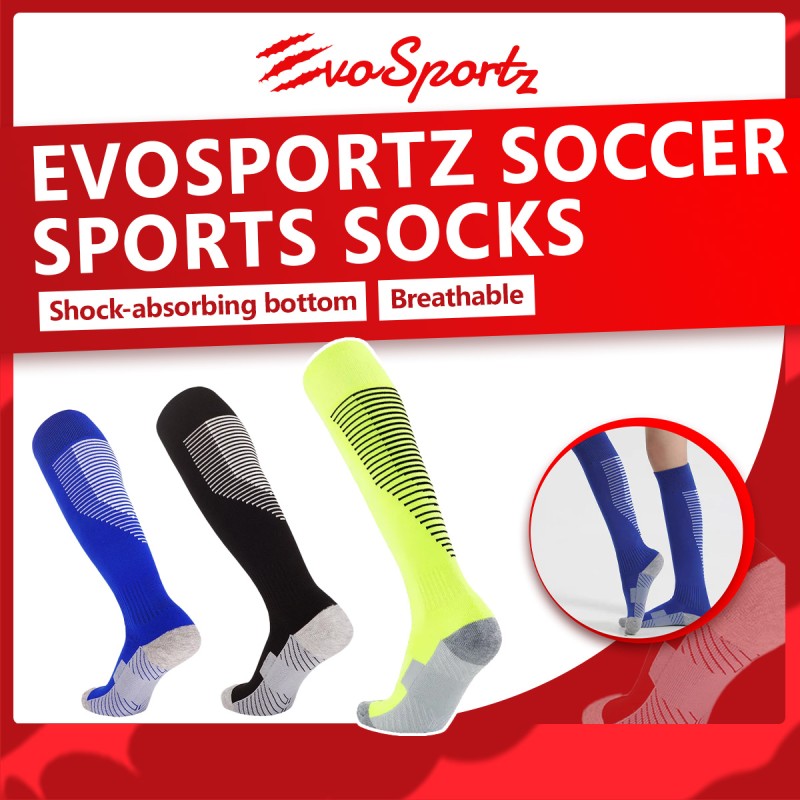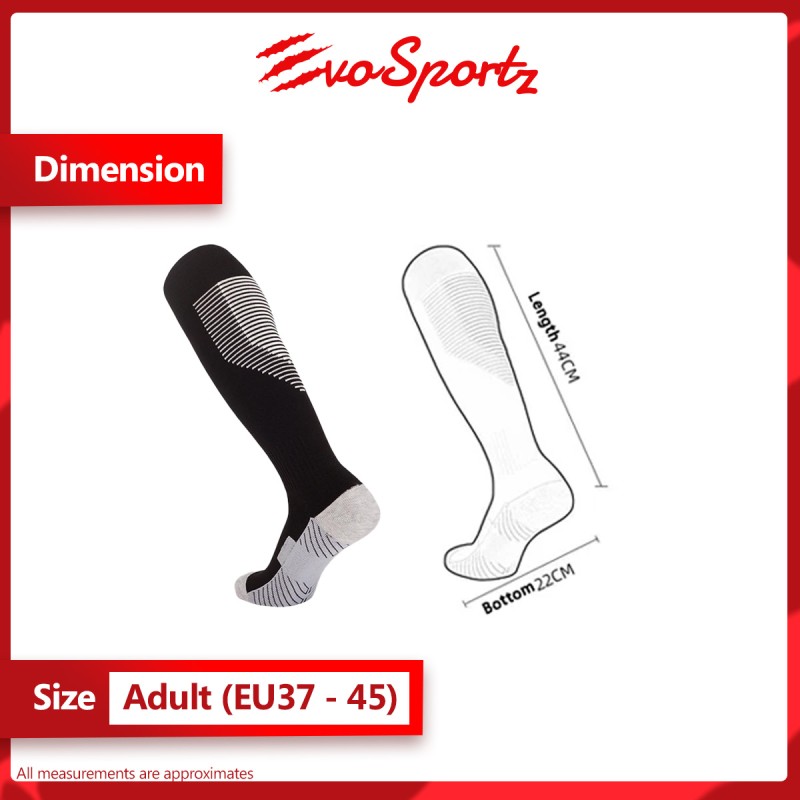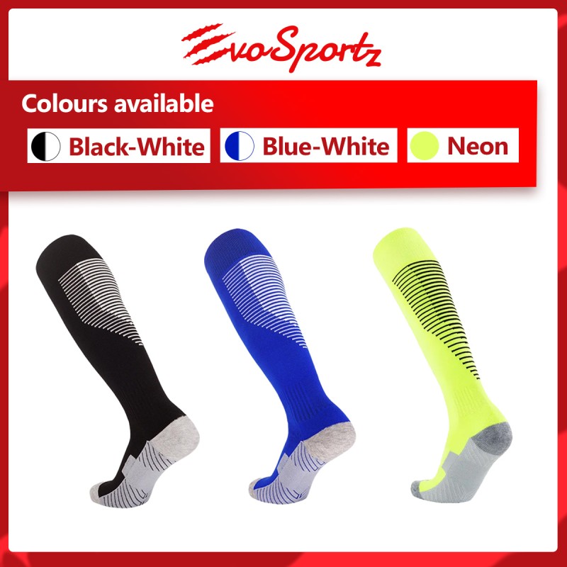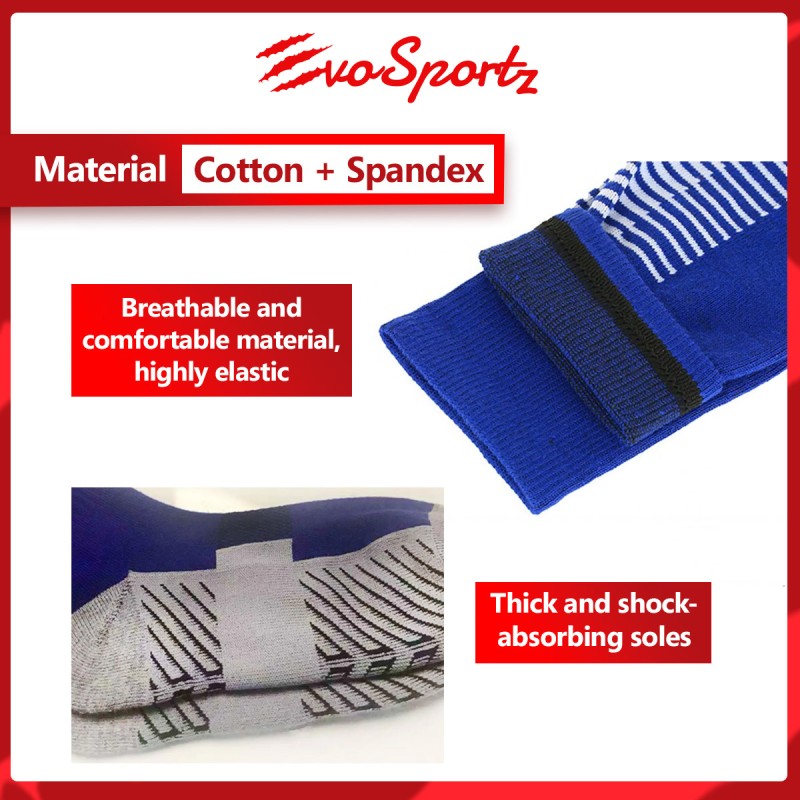 Enjoy 5% off retail price when you walk-in to our store to purchase as a member.High calf length socks for soccer or any other sports. Breathable and well-ventilated. The socks are thick and keep your feet sufficiently well protected.