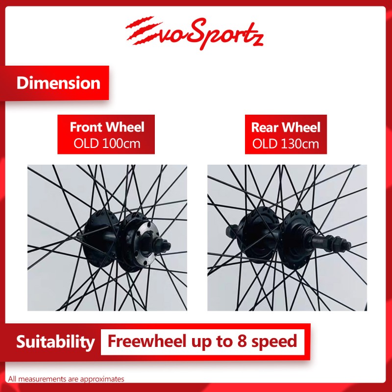 Over-Lock-nut Dimension (OLD): Front Wheel 100cm / Rear Wheel 130cm