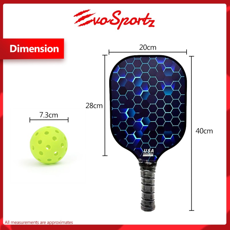 In the Pack: 1x pickleball paddle, 2x pickleball ball (RANDOM COLOURS)