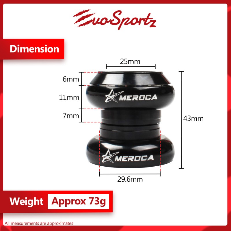 Enjoy an additional 5% off retail price when you walk-in to our store to purchase as a member.Meroca 29.6mm Headset for children’s bicycles. This headset uses sealed bearings for smoother and longer lasting performance. Made of aluminium alloy, it is strong and lightweight.