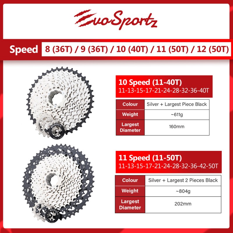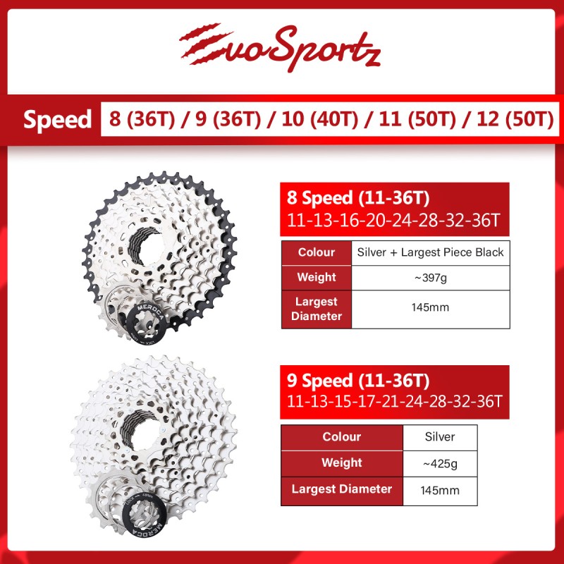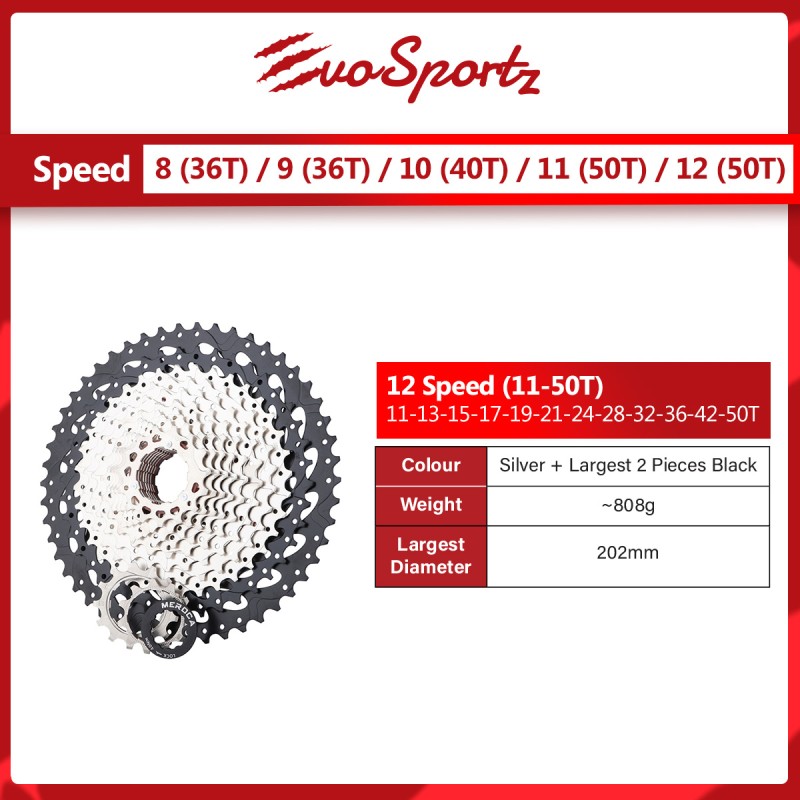 Speed Available: 8 (36T) / 9 (36T) / 10 (40T) / 11 (50T) / 12 (50T)