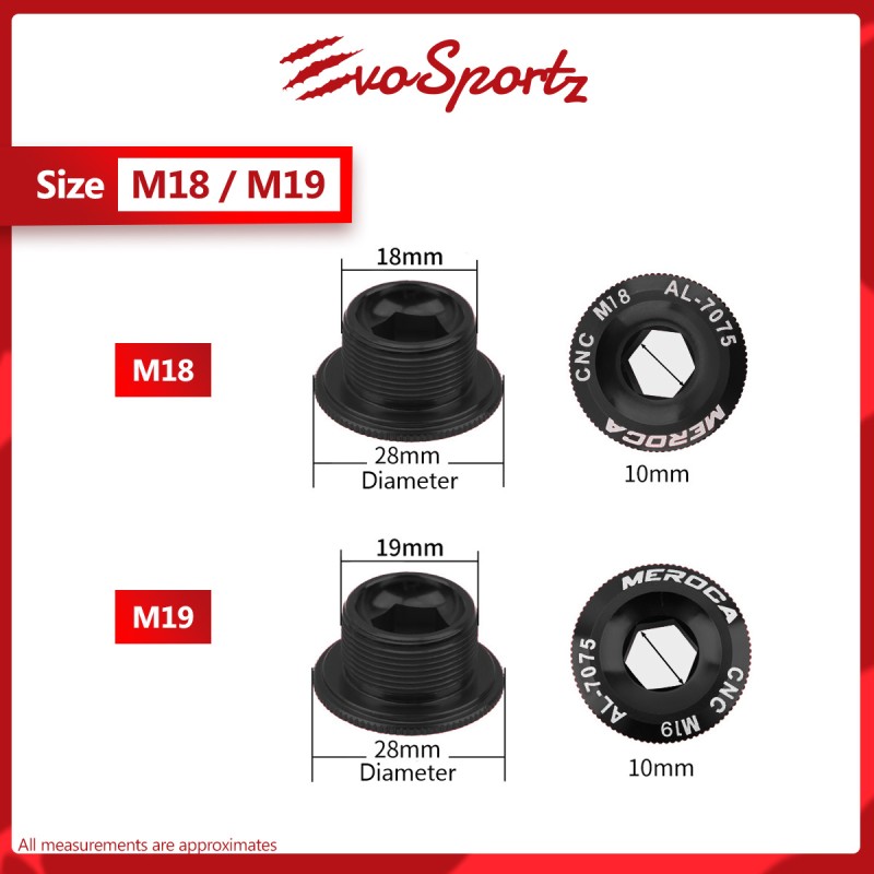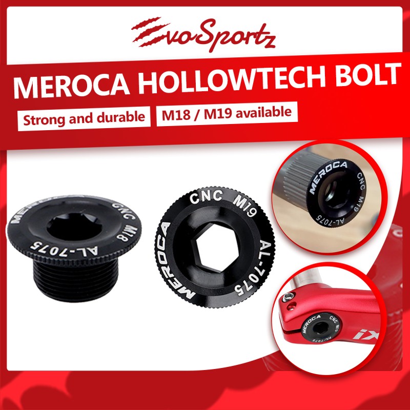Enjoy an additional 5% off retail price when you walk-in to our store to purchase as a member.The Meroca Hollowtech Bolt made from strong aluminium alloy and CNC-manufactured are far stronger than ordinary plastic bolts. Compatible with Hollowtech cranks, available in M18 and M19 size.