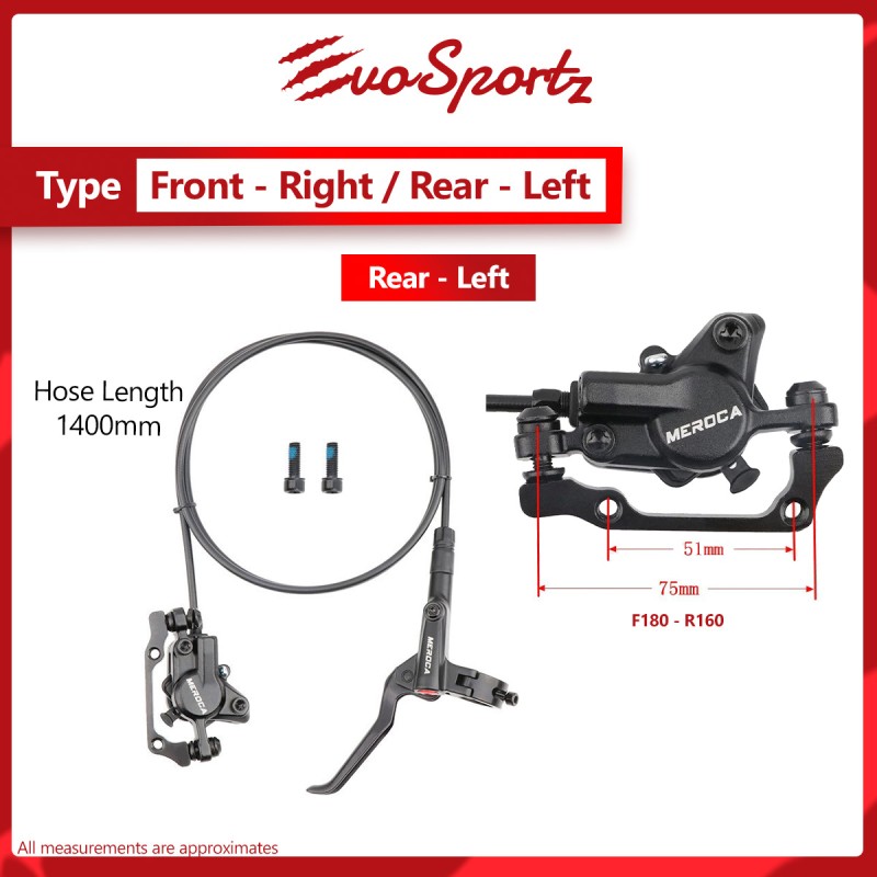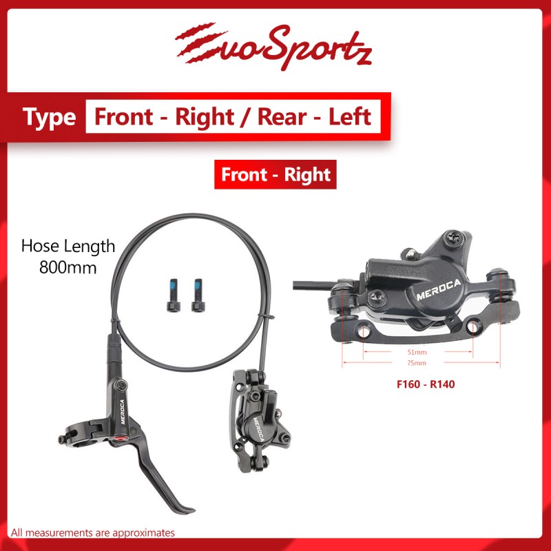 Meroca Hydraulic Brake, increase braking reaction with a hydraulic brake system rather than the old school cable brakes. Durable and reliable hydraulic brake design. Pre-bleed, no bleeding required, ready to use!
