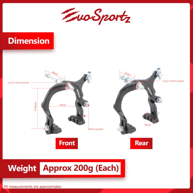 Enjoy an additional 5% off retail price when you walk-in to our store to purchase as a member.Meroca Long Reach Caliper Brake, quality built and suitable for bikes with bigger tyres. The aluminium alloy brake caliper has adjustable brake pads, making it easy to adjust to fit different types of rims.