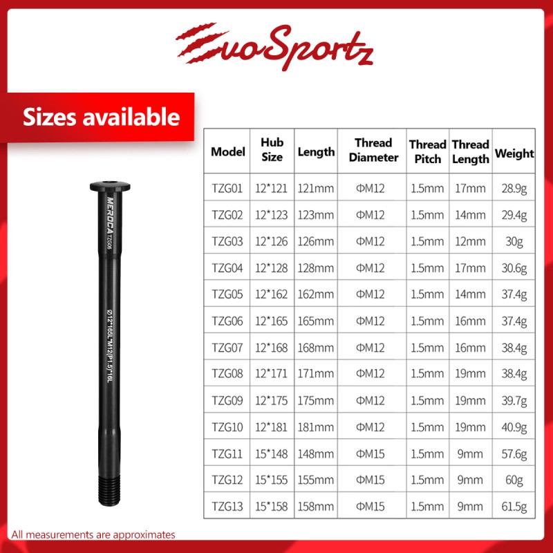 Enjoy an additional 5% off retail price when you walk-in to our store to purchase as a member.The Meroca Thru Axle Shaft is super lightweight and puts minimal burden on your bike. CNC manufactured, it has a smooth surface and precise threads. P1.5mm thread pitch and available in different sizes.