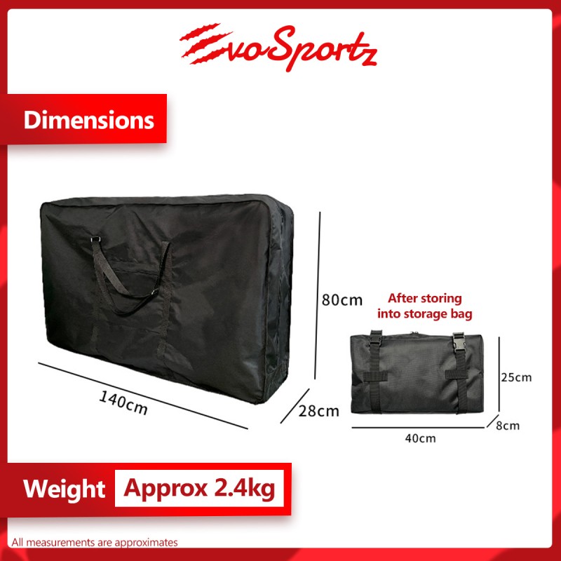 Features: Storage bag to store when not in use, thick and heavy duty material, shoulder strap for carrying