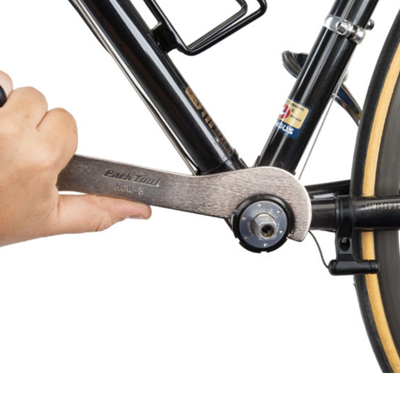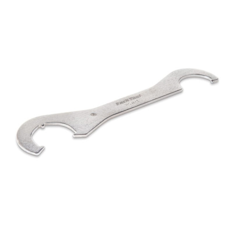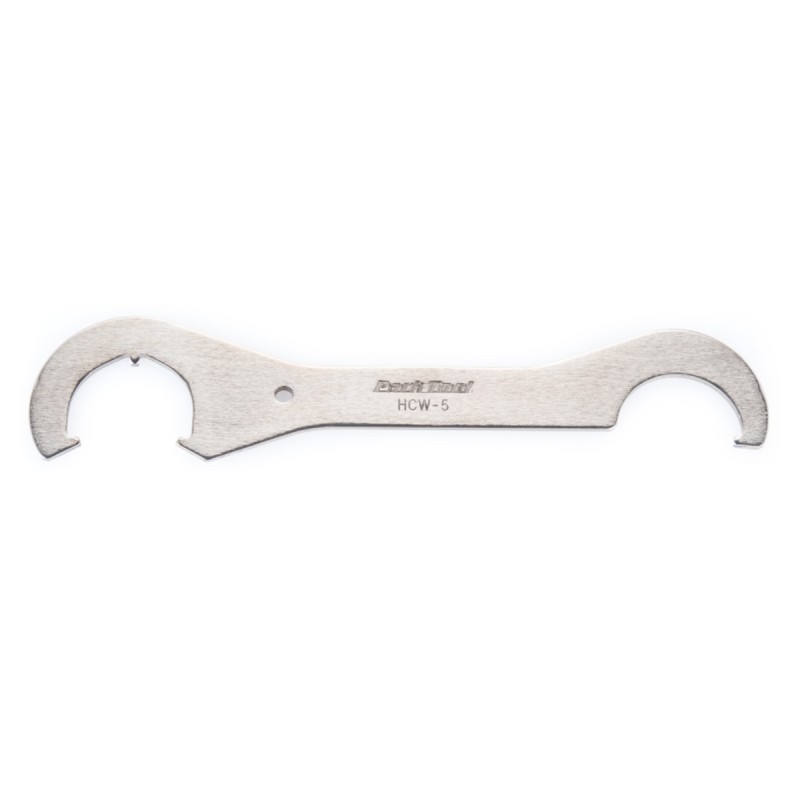 The HCW-5 is a double-ended wrench designed to fit lockrings found on cup-and-cone bicycle bottom brackets. One side features a single hook, the other side features 3 notches for better engagement in the lockrings. Heat-treated and nickel plated for a lifetime of use.