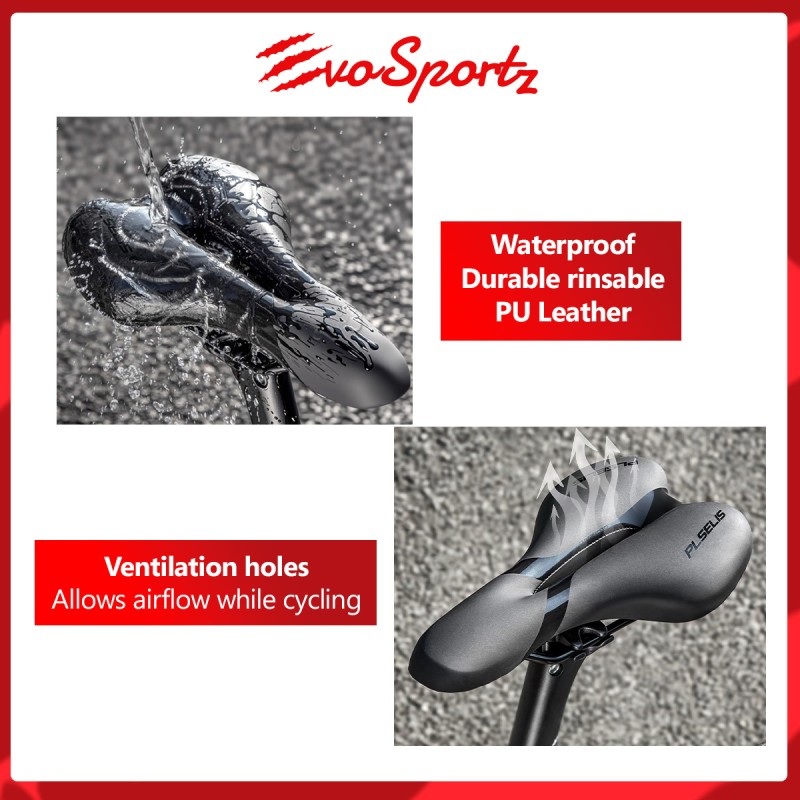 Reduce bumpy and painful rides with the PLSELIS Sports Gel Saddle. The ergonomically designed saddle comes with a ventilation hole to keep your ride cool and enjoyable. The silicone gel in the seat helps reduce up to 6 degrees celcius too! This sporty and sleek design saddle is a must have for long distance cycling.