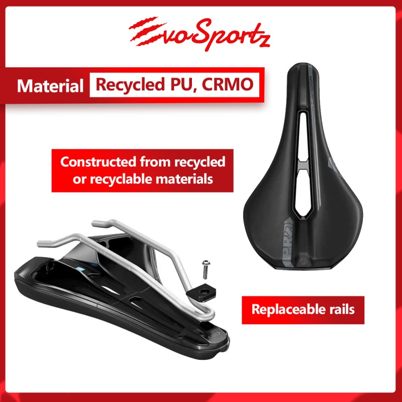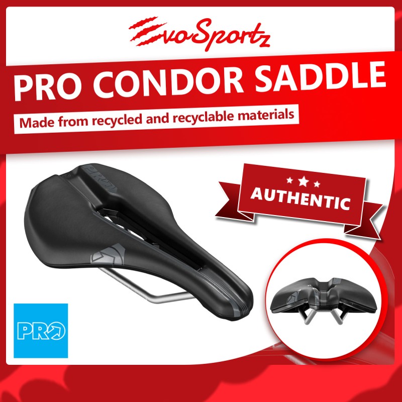 The PRO Condor Saddle is made with sustainability in mind, constructed from recycled or recyclable materials. Its broad anatomic fit cut-out encourage you to push your limits by providing high-performance benefits without the high-performance price tag. The short nose design, which has proven exceptionally popular in PRO's high performance Stealth range, allows you to hold a relatively aerodynamic position on the bike, while still providing comfort for more upright body positions too. The removable chrome moly rails, recycled PU padding and a recycled PU cover makes PRO the number one choice for the environment conscious you.