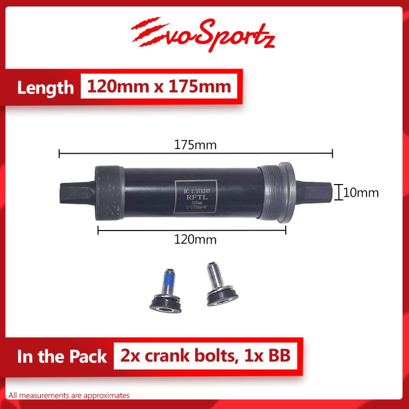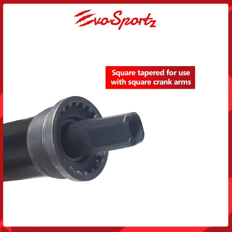 Enjoy 5% off retail price when you walk-in to our store to purchase as a member.Extra long bicycle bottom bracket commonly used for fat bike. Square tapered for use with square crank arms. Comes paired with 2 bolts. Please grease before use.