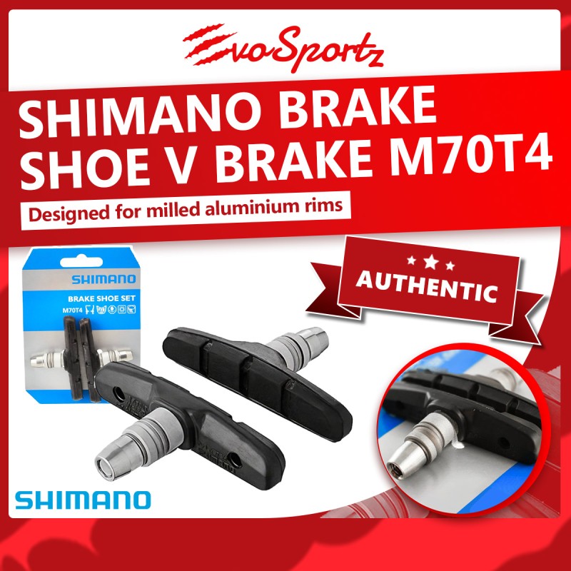 Enjoy 5% off retail price when you walk-in to our store to purchase as a member.Genuine Shimano brake pads for Shimano V brakes. We recommend using genuine Shimano pads for Shimano brakes for optimal performance. Brake pads comes in a pair (L + R), replace both sides at the same time.