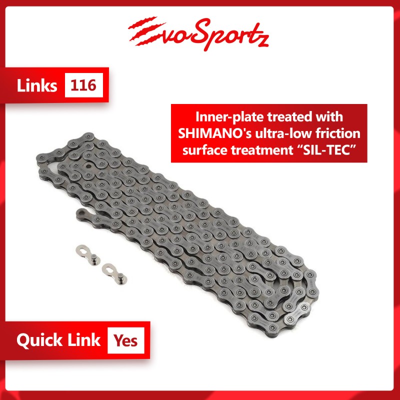 Enjoy 5% off retail price when you walk-in to our store to purchase as a member.The CN-HG601 is engineered for optimal power transfer. The inner-plate is treated with Shimano’s ultra-low friction surface treatment, SIL-TEC. It is smooth and precise for both front and rear shifting. The directional super narrow chain is the perfect choice for your 11 speed bike.