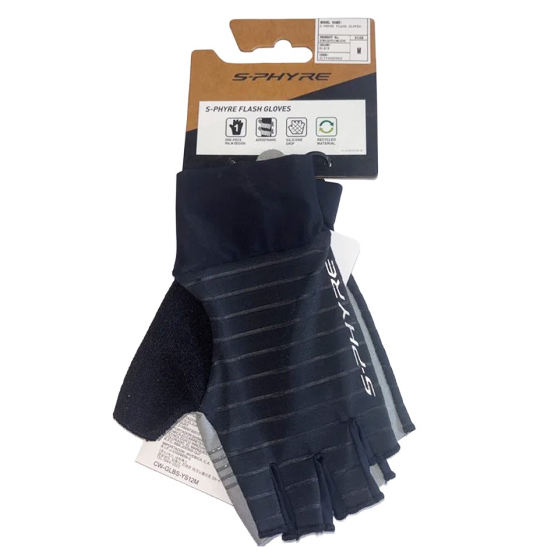 Enjoy 5% off retail price when you walk-in to our store to purchase as a member.The S-Phyre Flash Gloves are uniquely engineered to prioritize comfort without compromising on aerodynamic efficiency, making them equally suitable for time trials and road races. On the back of the hand, Shimano applied vertical grooves that reduce air resistance better than the horizontal designs commonly used for other racing gloves. Since extended wrist cuffs have only a minor effect on reducing wind resistance, Shimano chose a standard cuff design with fabric aligned to match the natural position of your hands while riding.