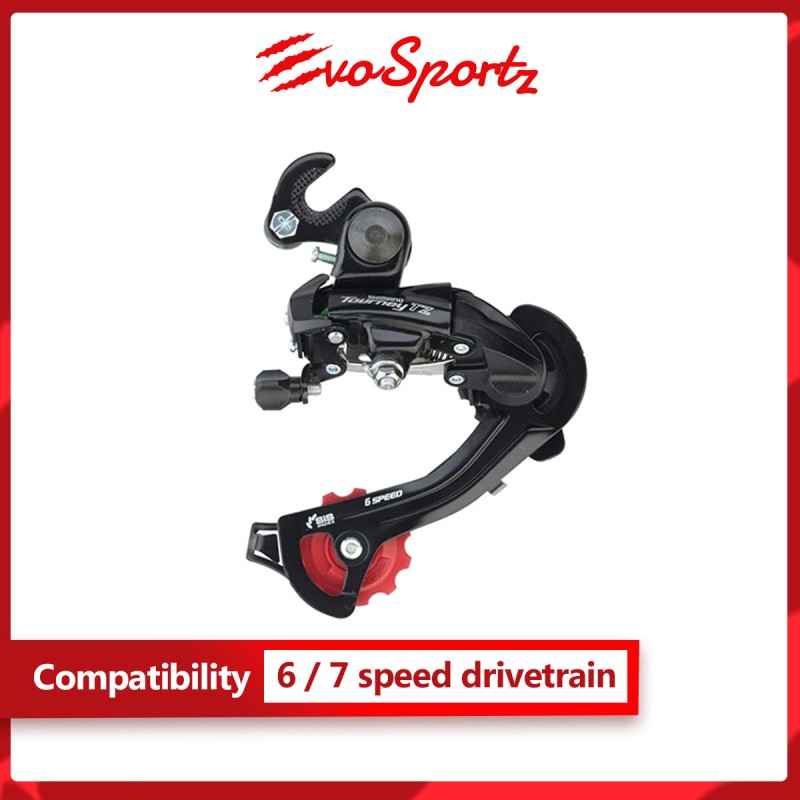 The longer cage Shimano TZ500 with riveted adapter (hanger) is suitable for bikes that requires a hanger for their derailleur and does not use a direct mount.