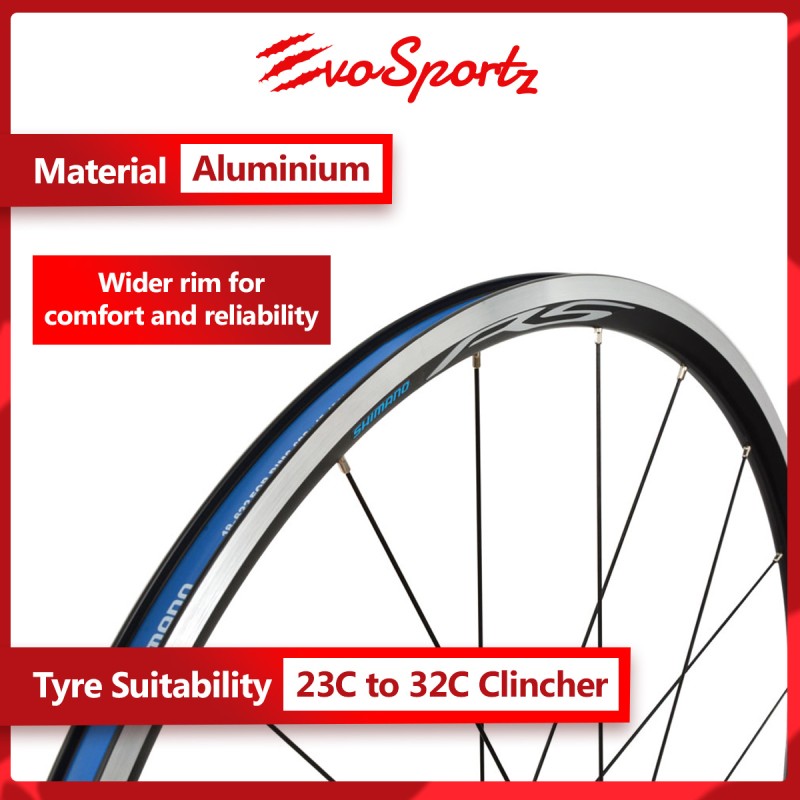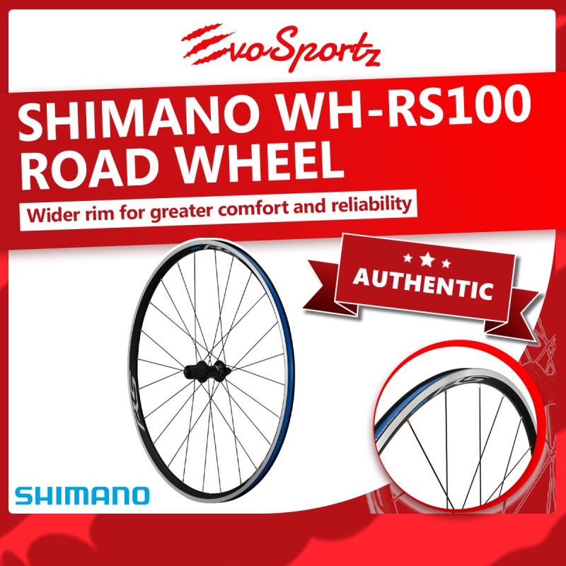 The Shimano WH-RS100 wheel is built wider for comfort and reliability. The 17C wide-profile rim improves drive rigidity and is suitable for tyres from 23C to 32C. Works with clincher tyres and is easy to maintain with high quality cup and cone bearings.