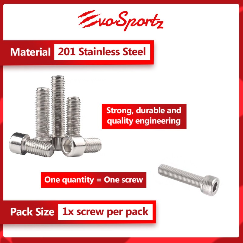 Stainless steel socket screws for general purpose use or bicycle parts replacement. Use this with a hex key / Allen key. Please take note that one quantity is equivalent to one screw. Please purchase the quantity required.