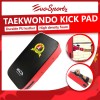 Large surface kick pads for your martial art training. Durable and long lasting PU leather to take huge impact from the blows. Vent hole made to prevent the kick pad from bursting from the impacts. High density foam and strong arm strap.