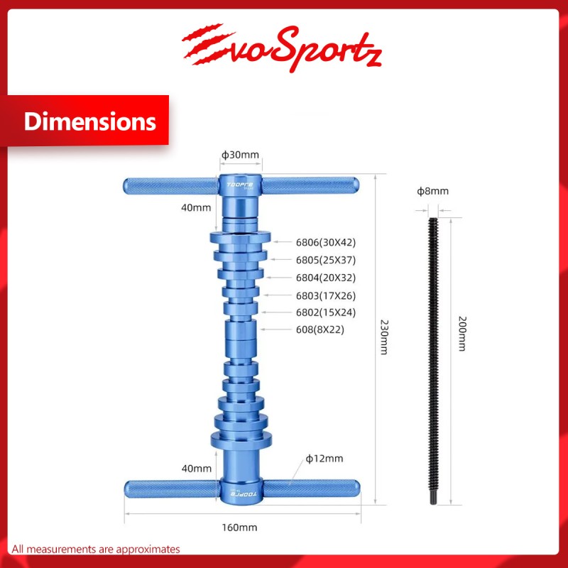 Enjoy 5% off retail price when you walk-in to our store to purchase as a member.The Toopre Hub Bearing Installation Kit is CNC manufactured for precision. With multiple adapters for you to switch between, it supports many common sizes of press-fit bottom brackets that you may need, as well as common bearing sizes.